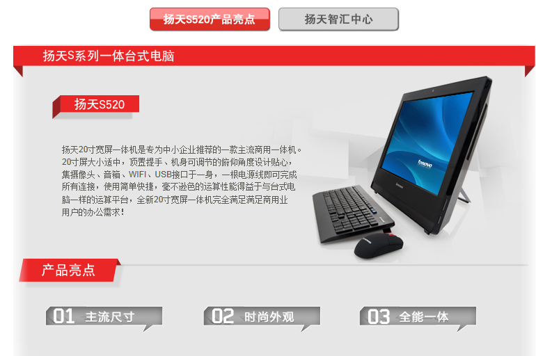 揚天S520-00 | 第四代智能英特爾?酷睿? i3 處理器4130/4G/1T(7200轉)GF800A 1G獨顯DVD刻錄20LED(黑、白)H81主板、802.11BGN無線網卡、集成攝像頭、相框式底座、集成2.0音箱及麥克風、180W電源、506×66*372mm、中小企業應用13版、在線顧問彩頁、三年有限保修及上門、CCC認證、中國能效標識、國家電磁兼容標準B級認證、ROHS無鉛認證、美國能源之星認證 | 5599 | |