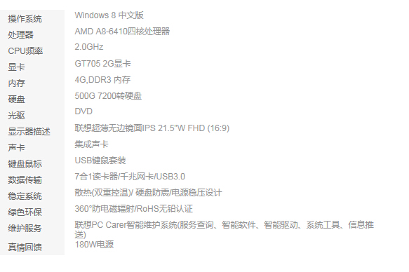 聯想超薄無邊鏡面IPS 21.5"W FHD (16:9)