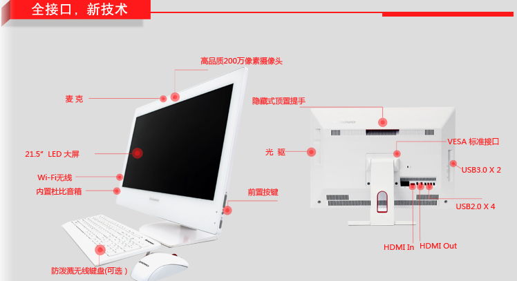 揚天S740-00 | 英特爾? 奔騰? 處理器G3220/4G/1T SSHD GF820A 1G獨顯DVD刻錄21.5LED( 白)Windows 8.1 中文版 (64bit)B85主板、802.11BGN無線網卡、集成攝像頭、可俯仰(白)底座、集成2.0音箱及麥克風、讀卡器/藍牙4.0 180W電源、534*175.2*419(mm)、在線顧問彩頁、三年有限保修及上門、CCC認證、中國能效標識、國家電磁兼容標準B級認證、ROHS無鉛認證、美國能源之星認證 | 5499 |